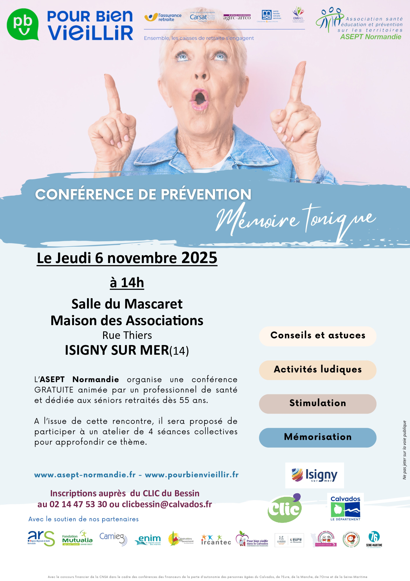 Ces petites pertes de mémoire du quotidien vous inquiètent ? Venez comprendre d’où elles viennent lors d’une 𝐜𝐨𝐧𝐟𝐞́𝐫𝐞𝐧𝐜𝐞 𝐨𝐮𝐯𝐞𝐫𝐭𝐞 𝐚̀ 𝐭𝐨𝐮𝐬 𝐥𝐞𝐬 𝟓𝟓 𝐚𝐧𝐬 𝐞𝐭 +, suivie d’un 𝐜𝐲𝐜𝐥𝐞 𝐝𝐞 𝟒 𝐚𝐭𝐞𝐥𝐢𝐞𝐫𝐬 pour entraîner votre mémoire tout en vous amusant !